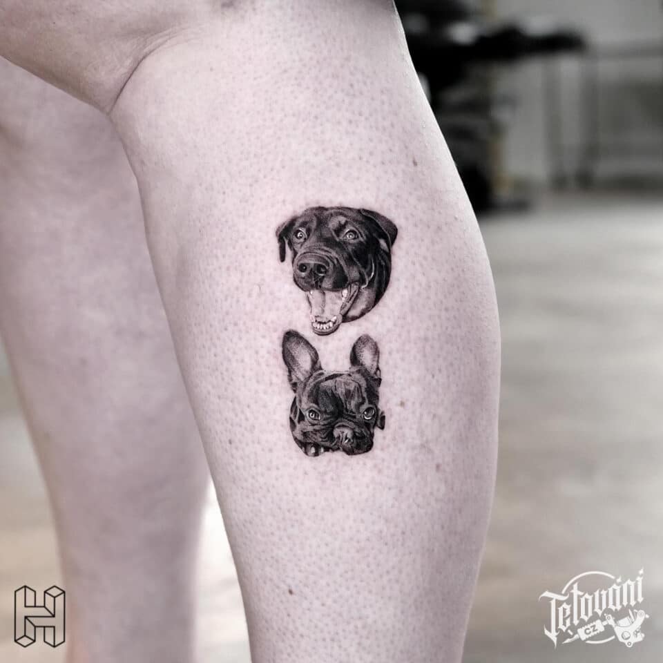 Tetování zvířata, psi na lýtku