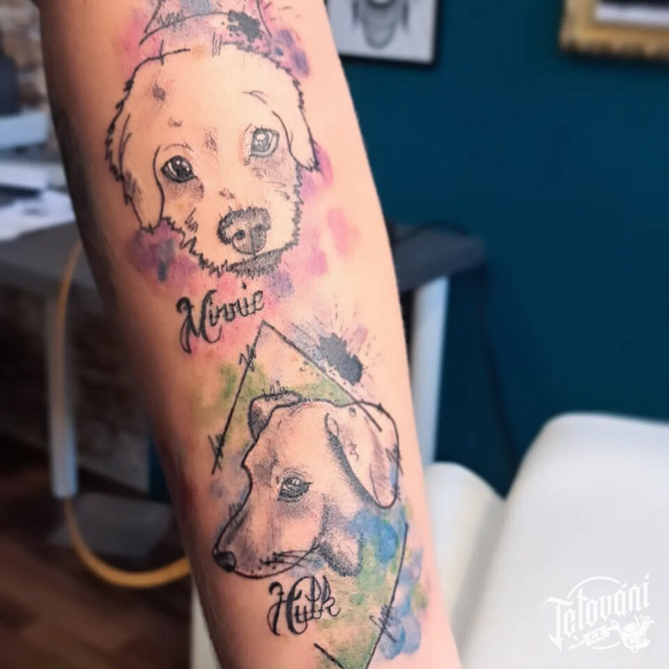Tetování zvířata, psi, nápisy, jména na předloktí