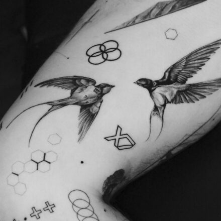 Tetování zvířata, ptáci a větvičky na hrudi