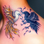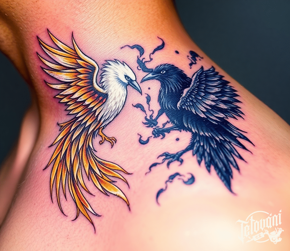 Tetování zvířata, ptáci, dobro a zlo na krku