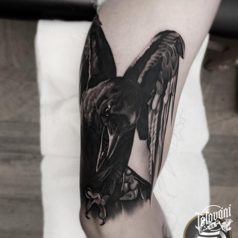 Tetování zvířata, ptáci, havran na paži