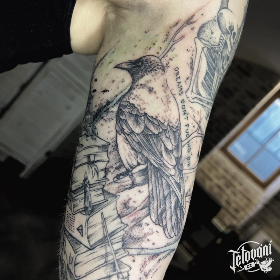 Tetování zvířata, ptáci, havran, vrána na ruce