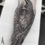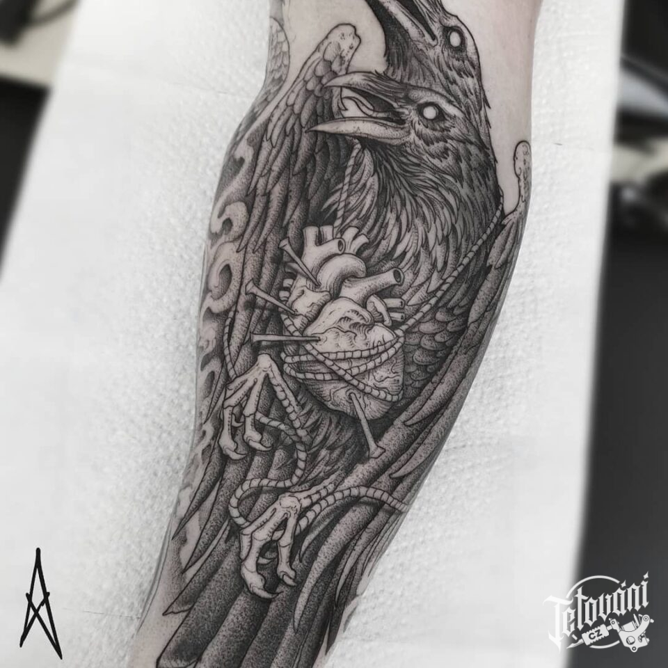 Tetování zvířata, ptáci, havrani na předloktí