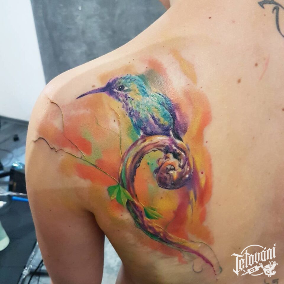 Tetování zvířata, ptáci, kolibřík na lopatce