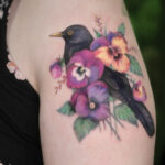 Tetování zvířata, ptáci, kos a květiny na rameno