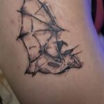 Tetování zvířata, ptáci netopýr na boku stehna