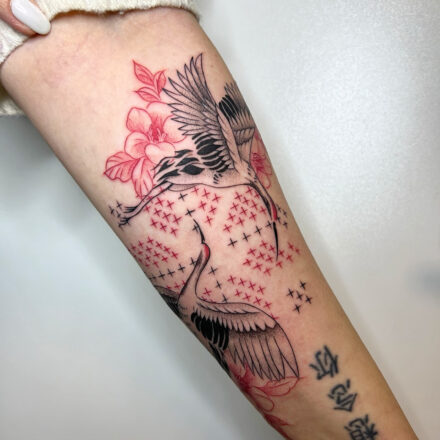 Tetování zvířata, ptáci, papoušek a nápis na lýtko