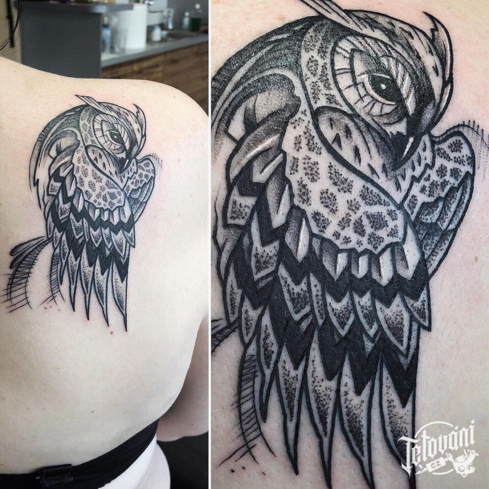 Tetování zvířata, ptáci, sova na lopatce