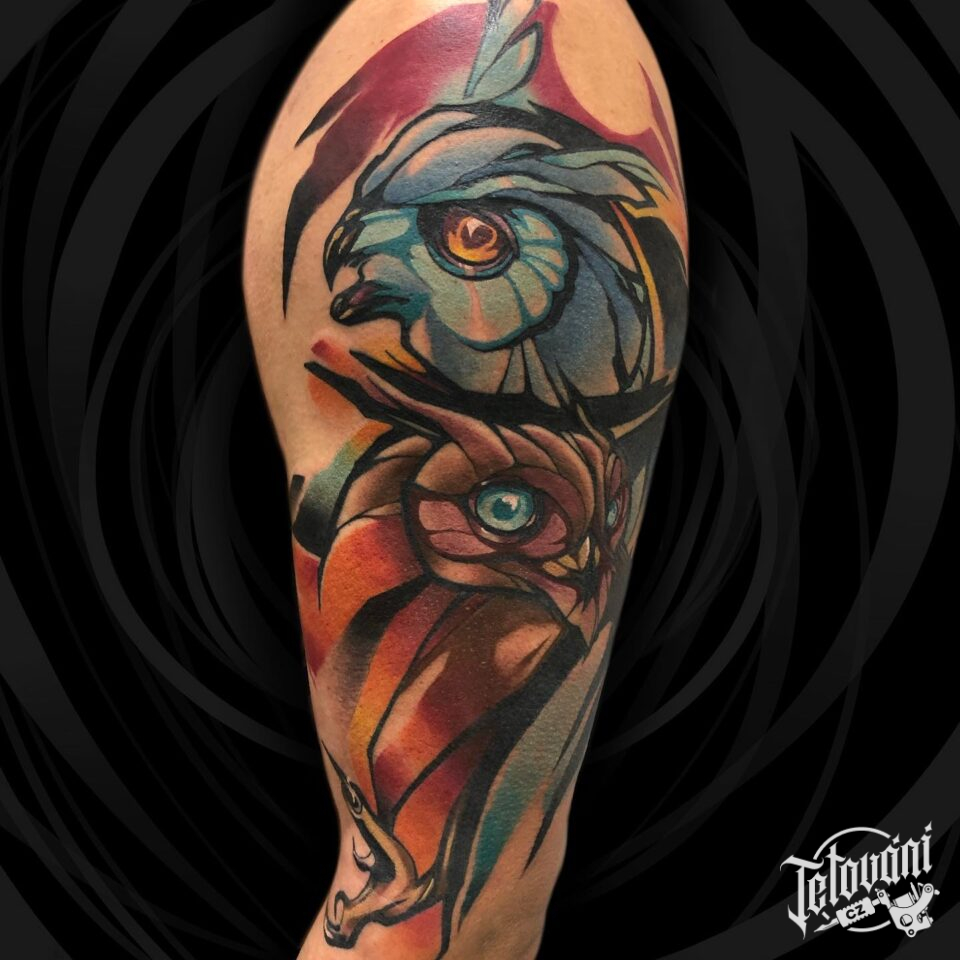Tetování zvířata, ptáci, sovy na rameni