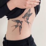Tetování zvířata, ptáci, vlaštovky na boku břicha