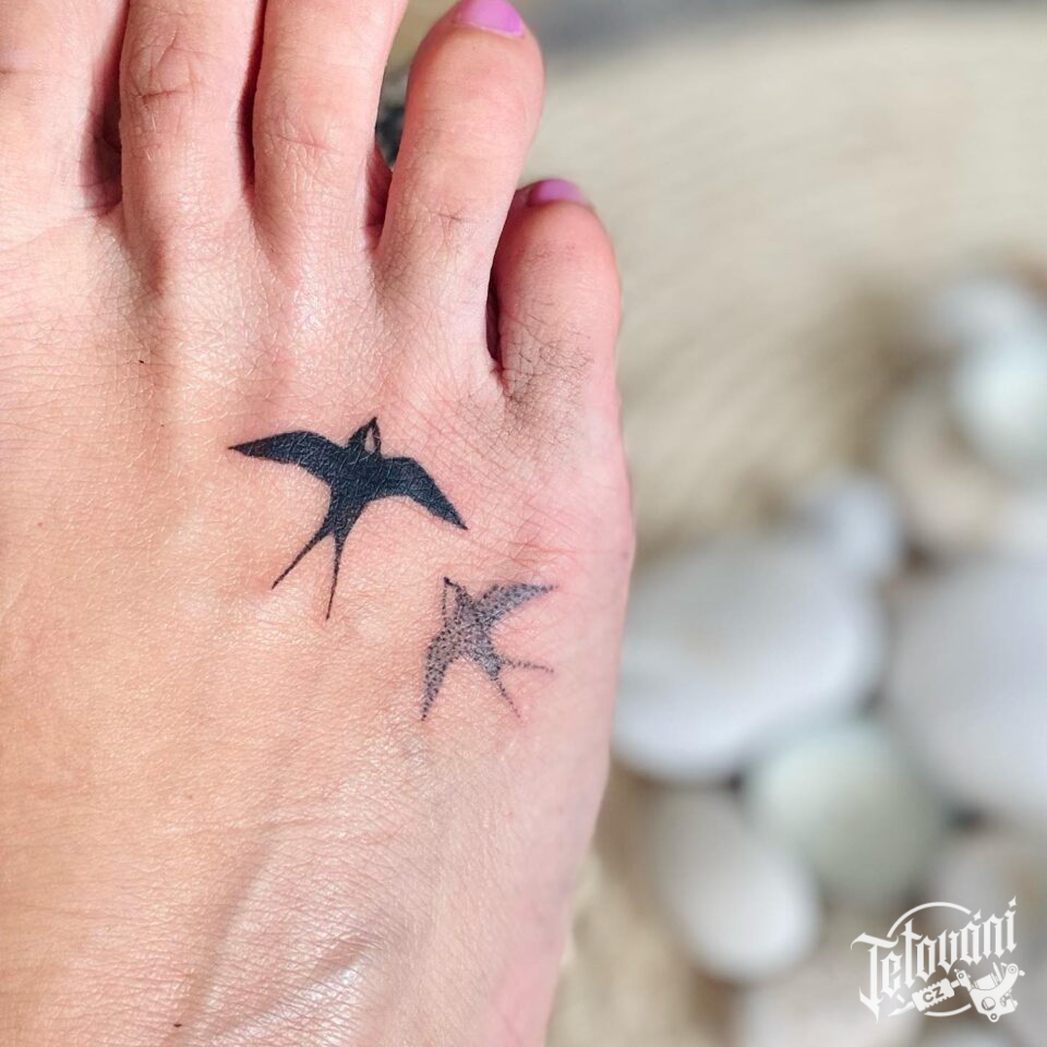 Tetování zvířata, ptáci, vlaštovky na nártu