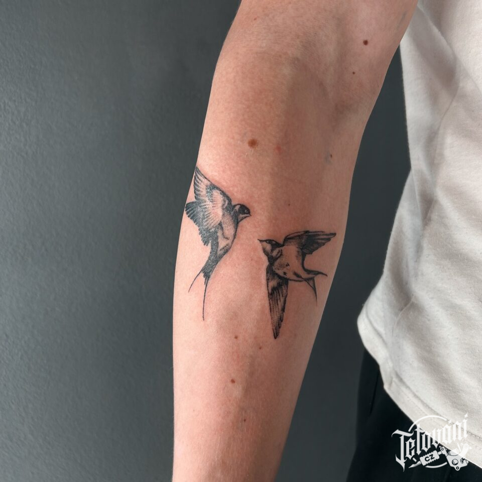 Tetování zvířata, ptáci, vlaštovky na předloktí
