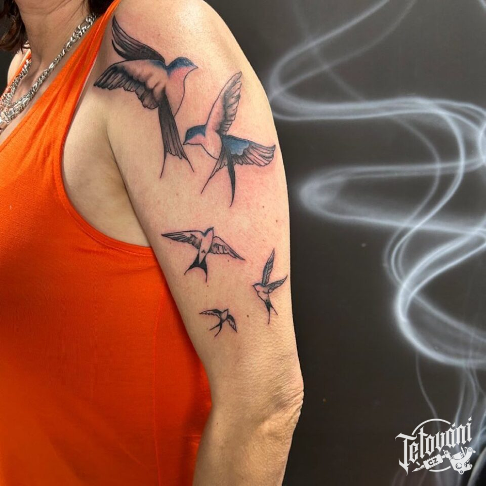 Tetování zvířata, ptáci, vlaštovky na rameno