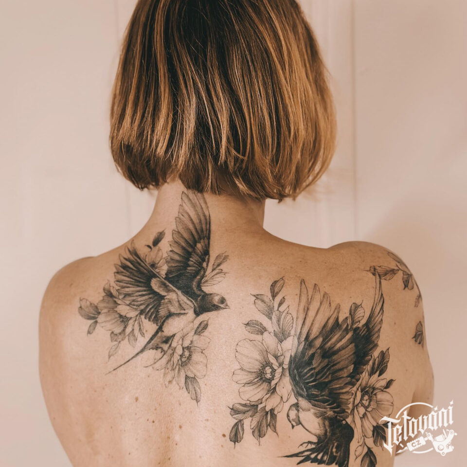 Tetování zvířata, ptáci, vlaštovky na zádech