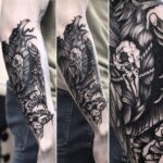 Tetování zvířata, ptáci, vrána, lebka na předloktí