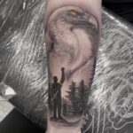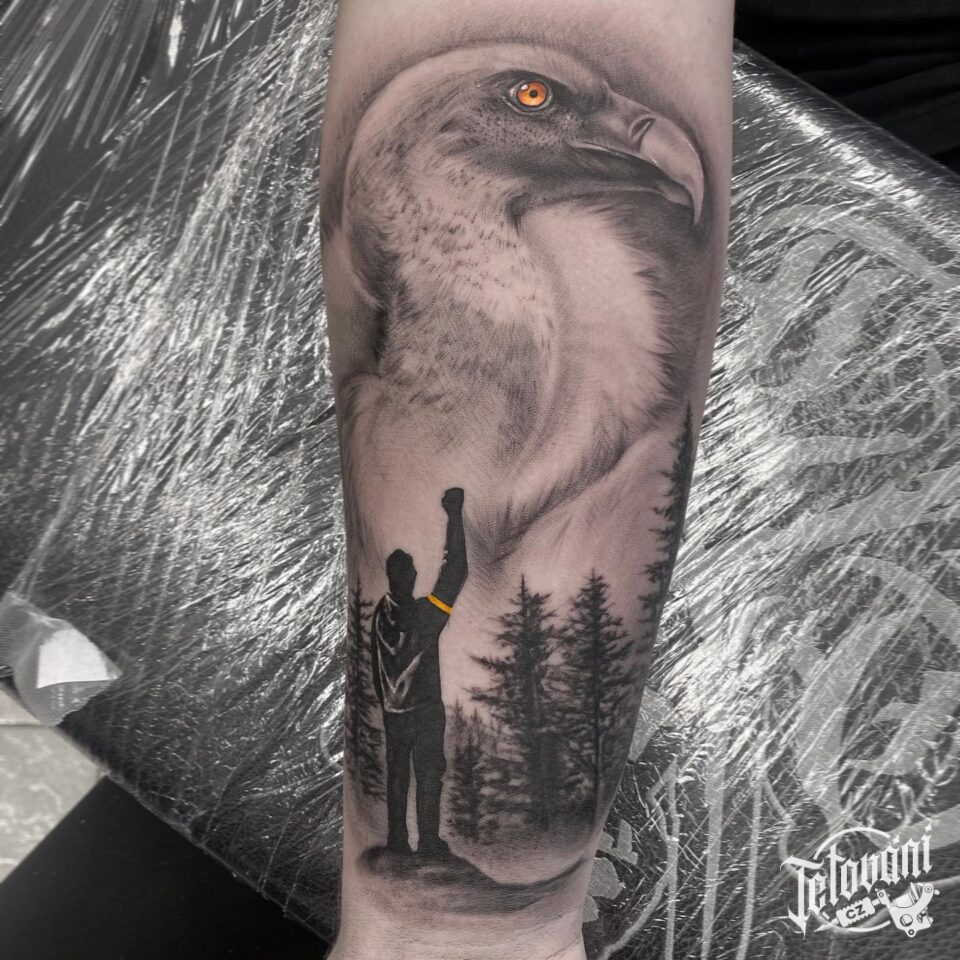 Tetování zvířata, pták a příroda, les na předloktí