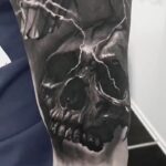 Tetování zvířata, pták, havran a lebka na rameni