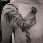 Tetování zvířata, pták, kohout na hrudi