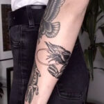 Tetování zvířata pták, kreveta, krokodýl, symboly života na předloktí