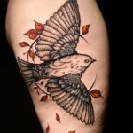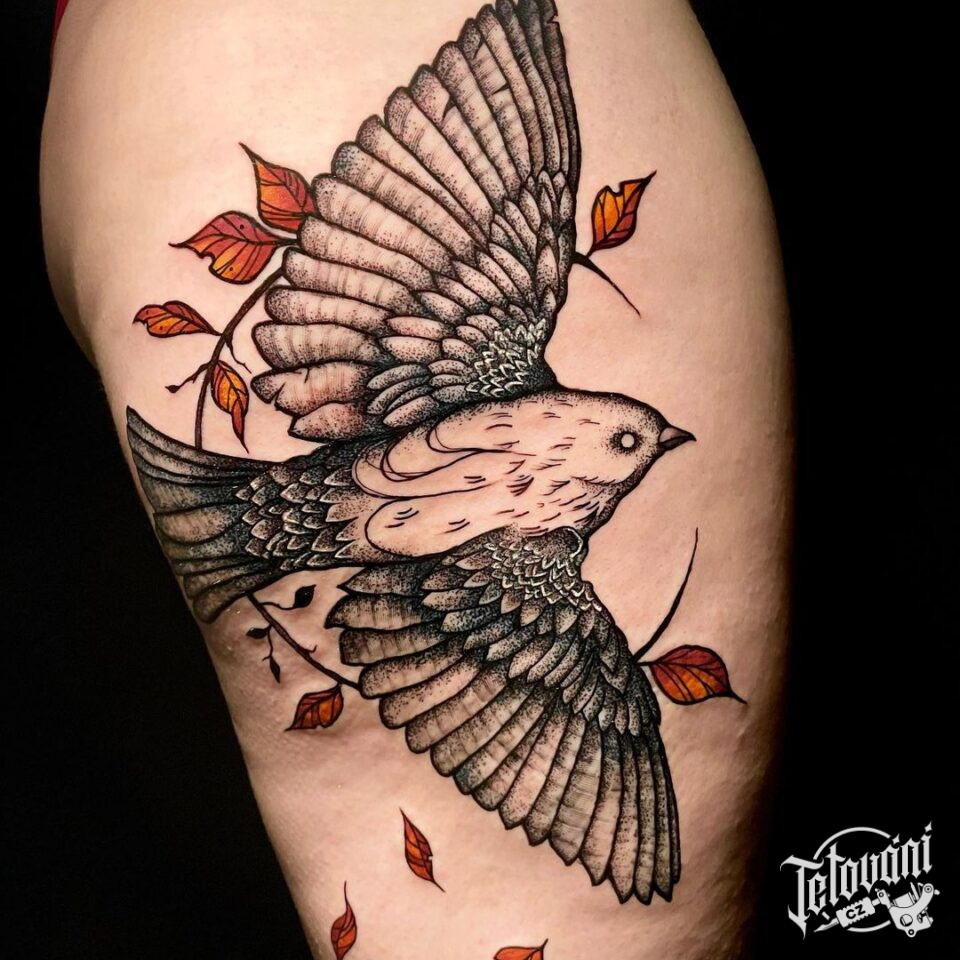 Tetování zvířata, pták na boku stehna