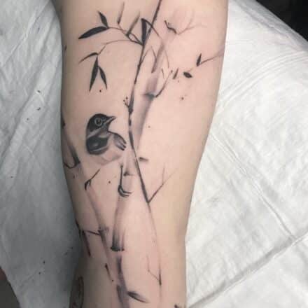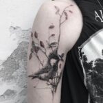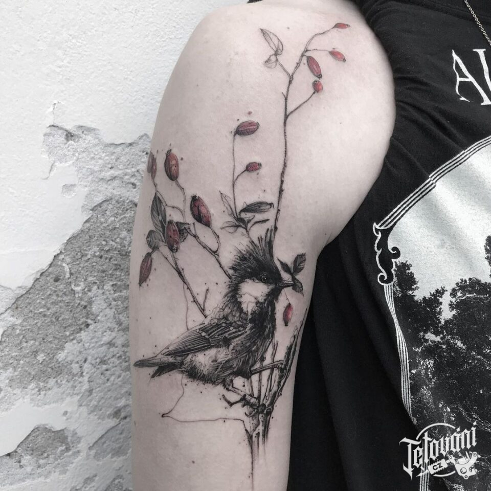 Tetování zvířata, pták na větvičce , Sýkorka Úhelníček na rameni