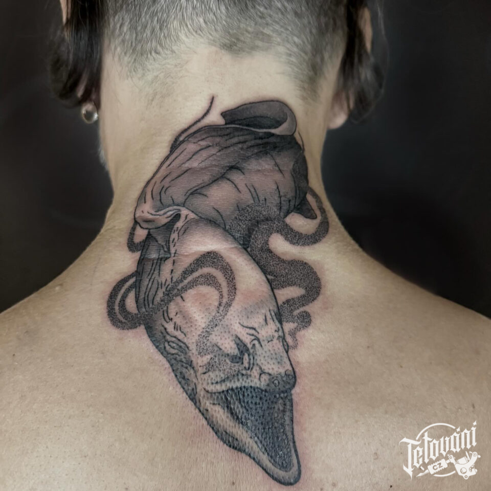 Tetování zvířata ryba a ryby, znamení zvěrokruhu na krk