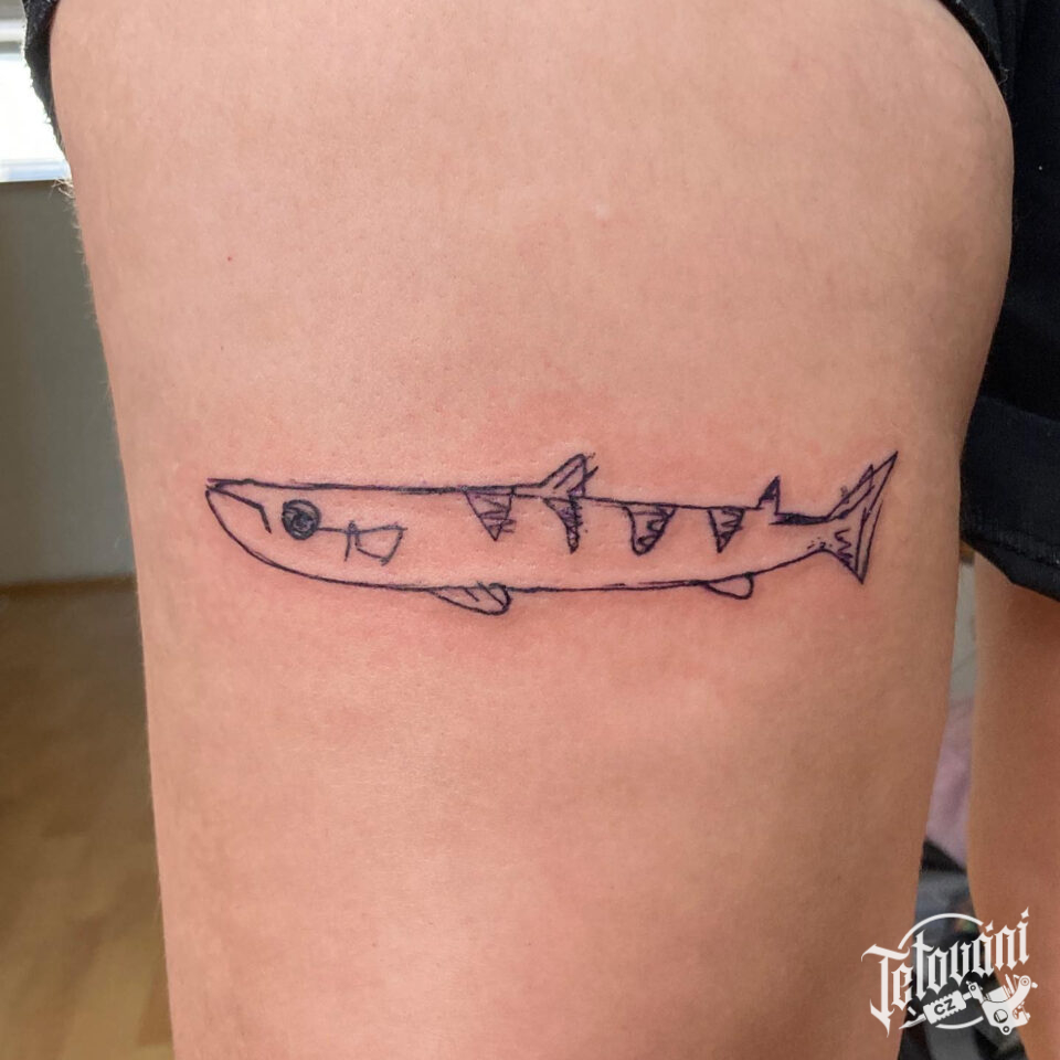 Tetování zvířata, ryba na stehno
