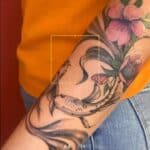 Tetování zvířata, ryby a květiny na předloktí