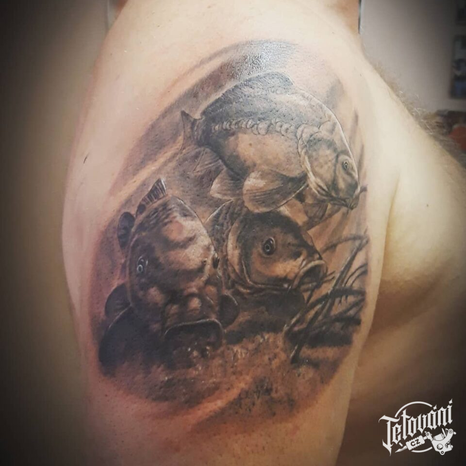 Tetování zvířata, ryby na rameni