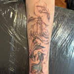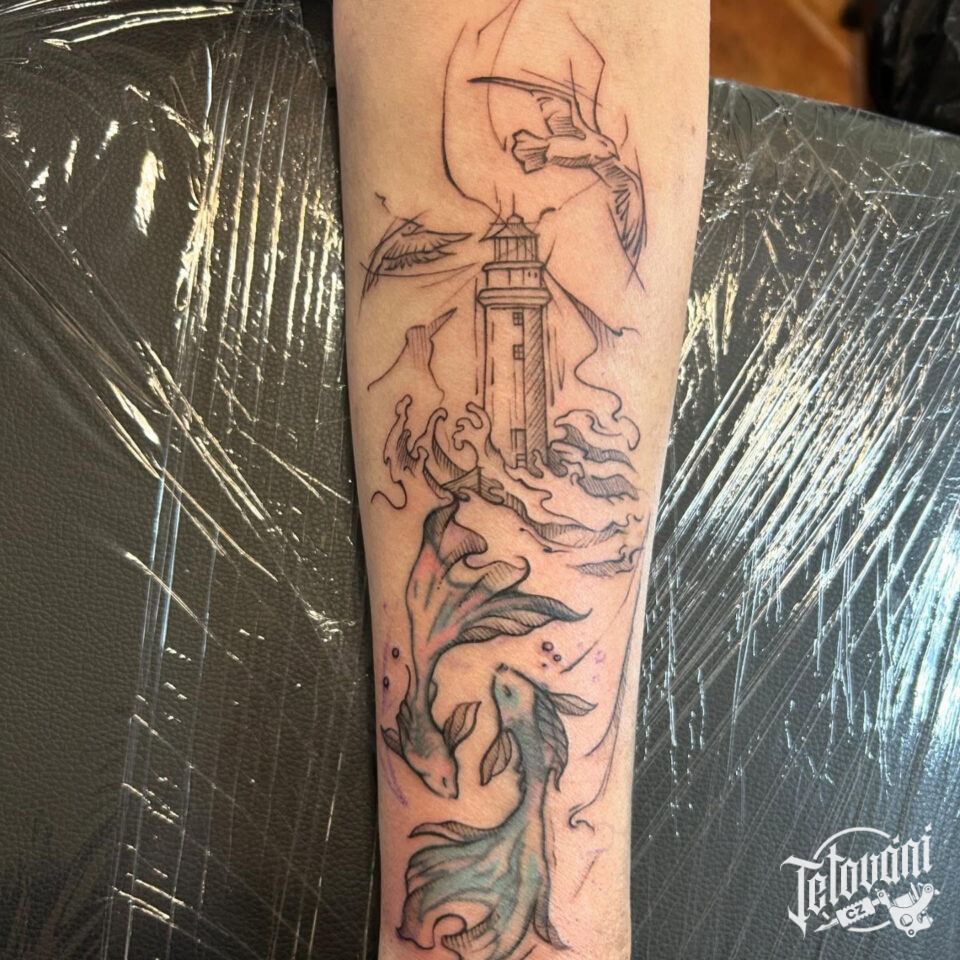 Tetování zvířata, ryby, příroda, moře, maják na předloktí