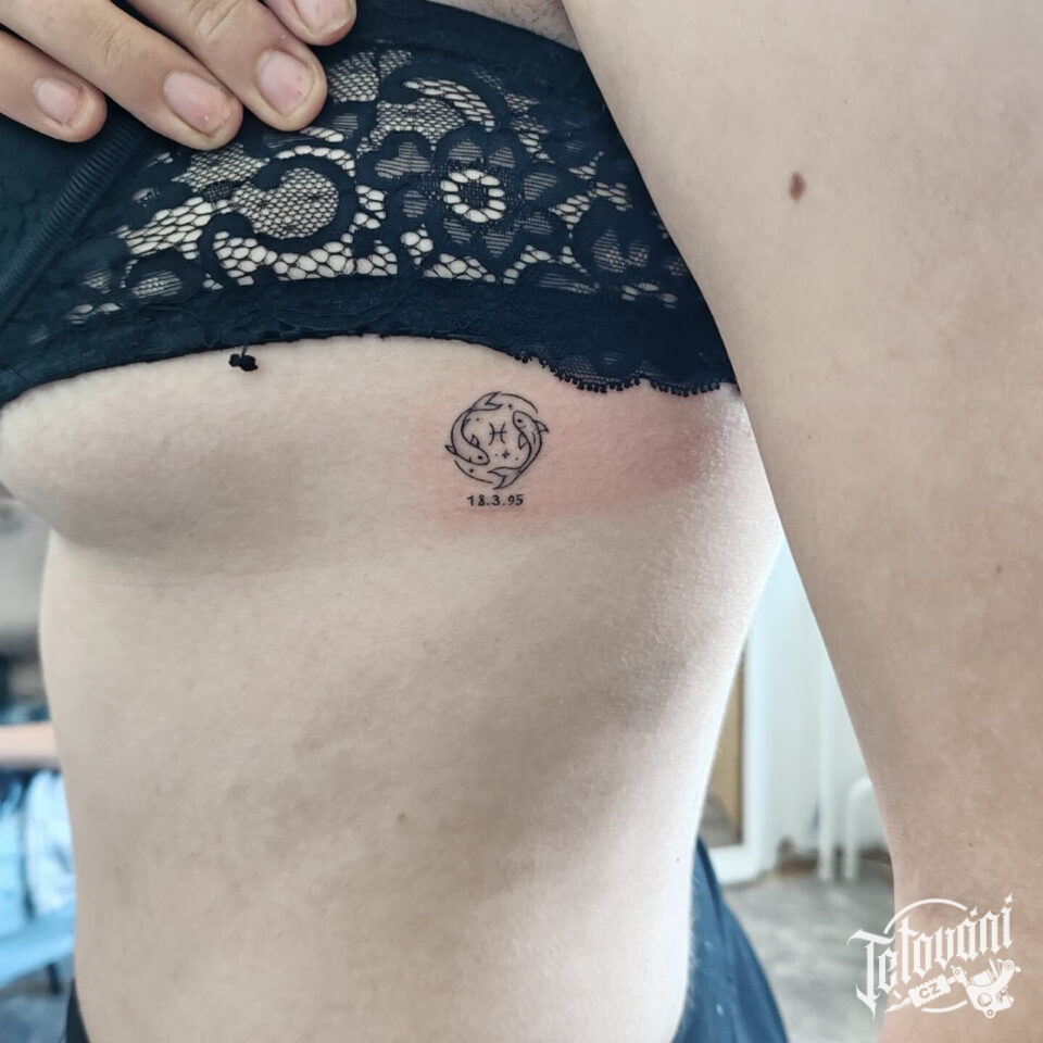 Tetování zvířata, ryby znamení zvěrokruhu a datum narození na žebrech