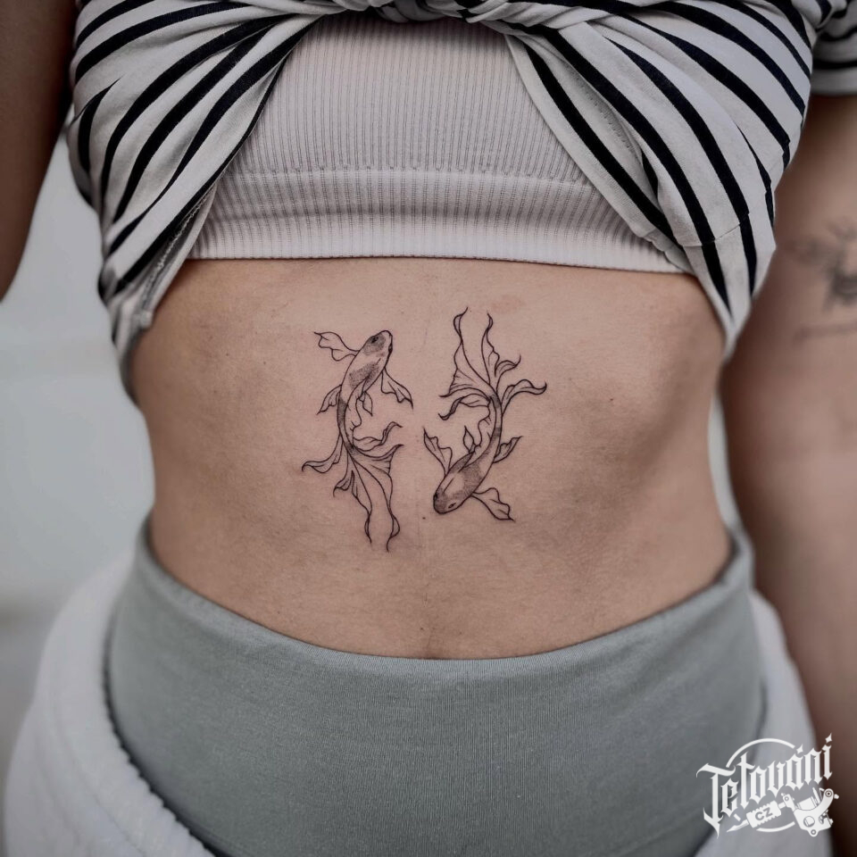 Tetování zvířata, ryby znamení zvěrokruhu na břichu