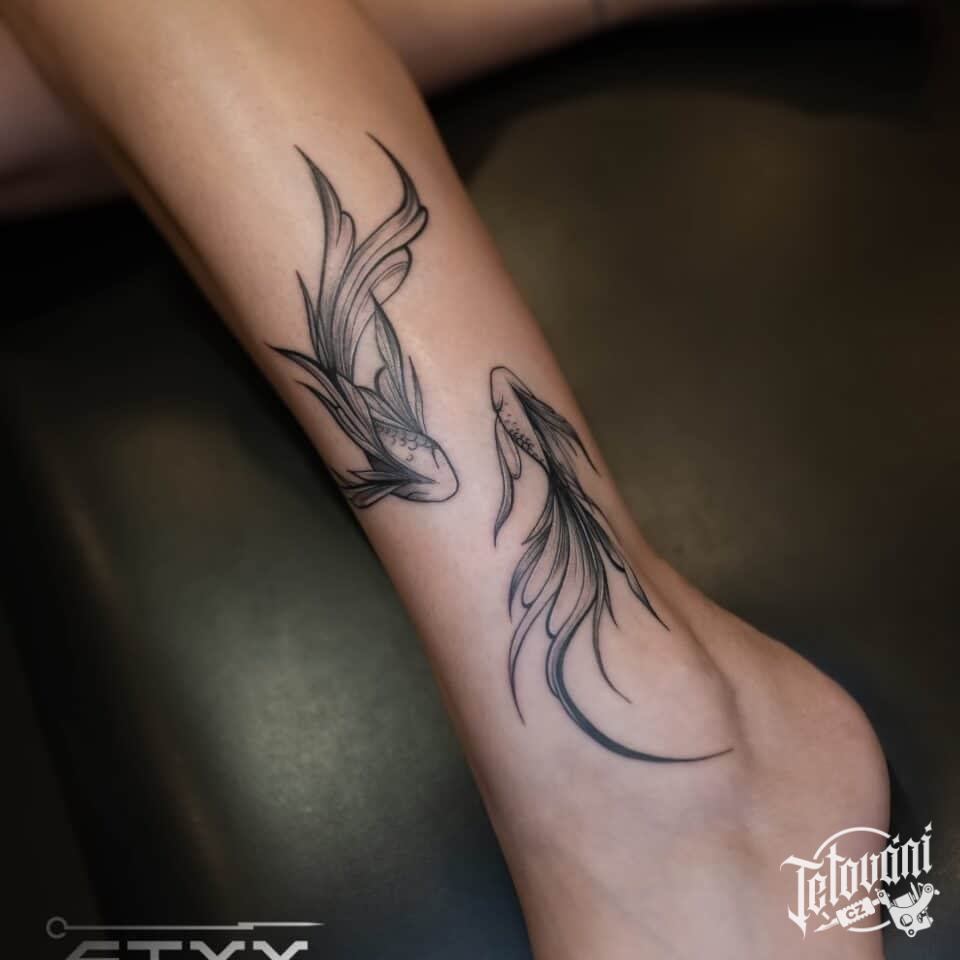 Tetování zvířata, ryby znamení zvěrokruhu na kotníku
