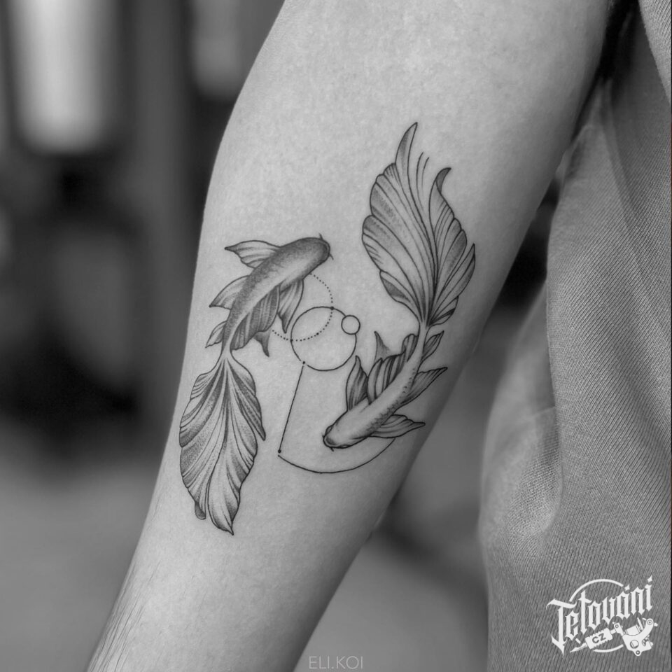 Tetování zvířata, ryby znamení zvěrokruhu na předloktí