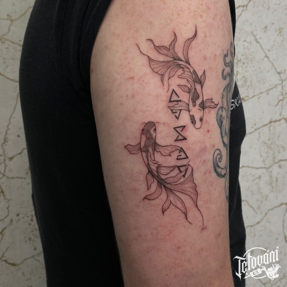 Tetování zvířata, ryby znamení zvěrokruhu na rameni