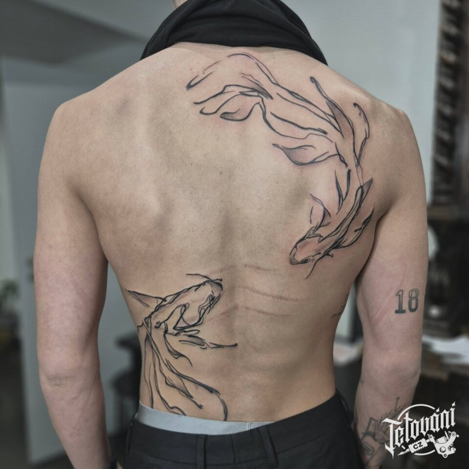 Tetování zvířata, ryby znamení zvěrokruhu na zádech
