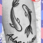 Tetování zvířata, ryby znamení zvěrokruhu s nápisem na předloktí