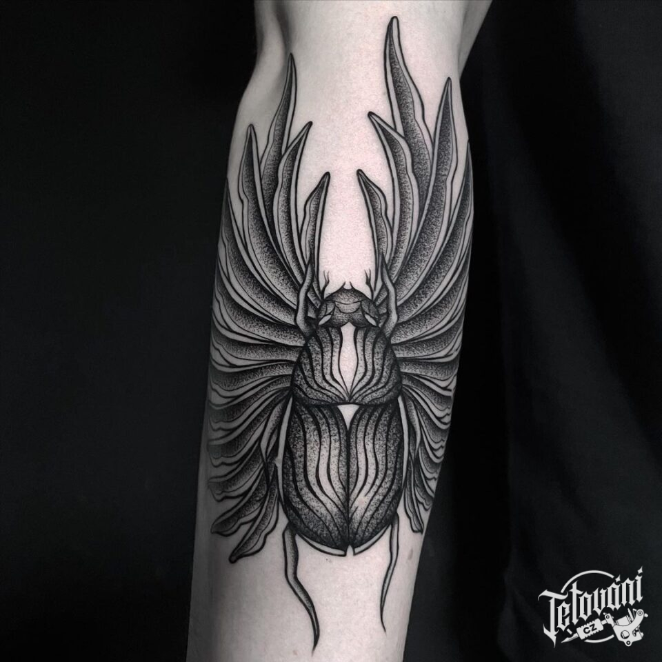 Tetování zvířata, scarabeus na předloktí