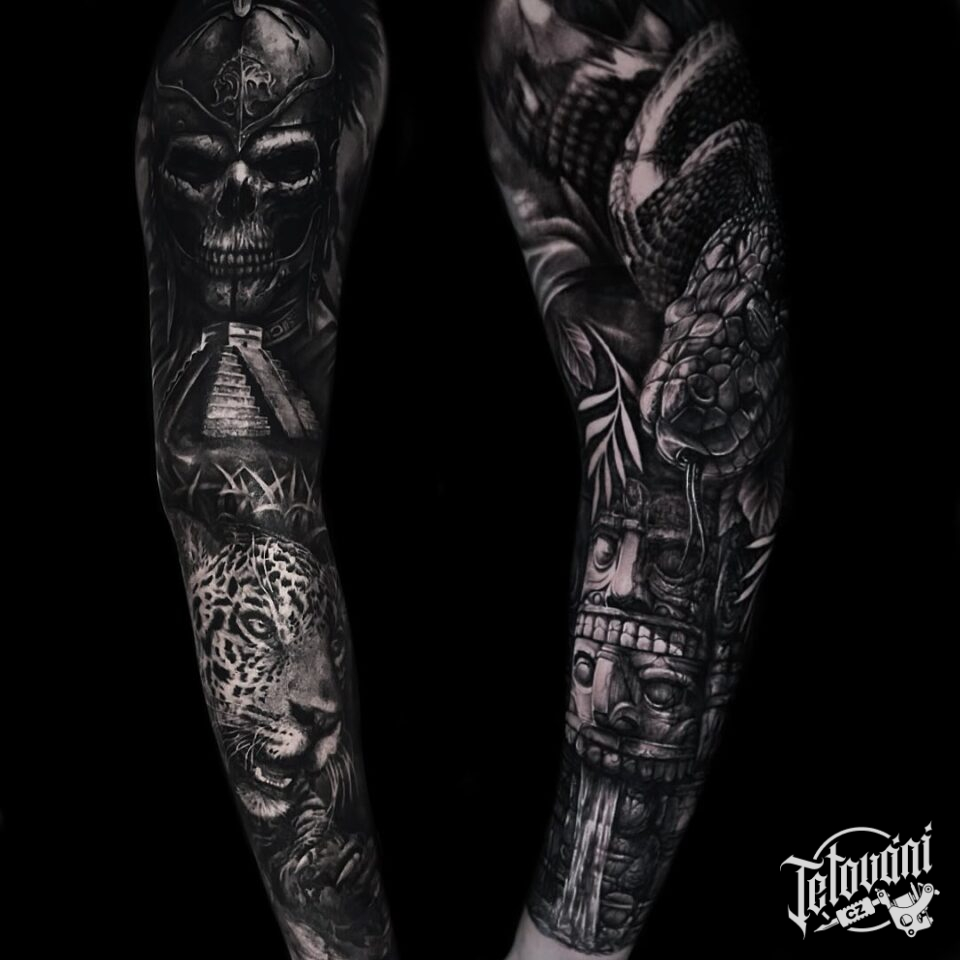 Tetování zvířata, šelma, had, lebka, rukáv