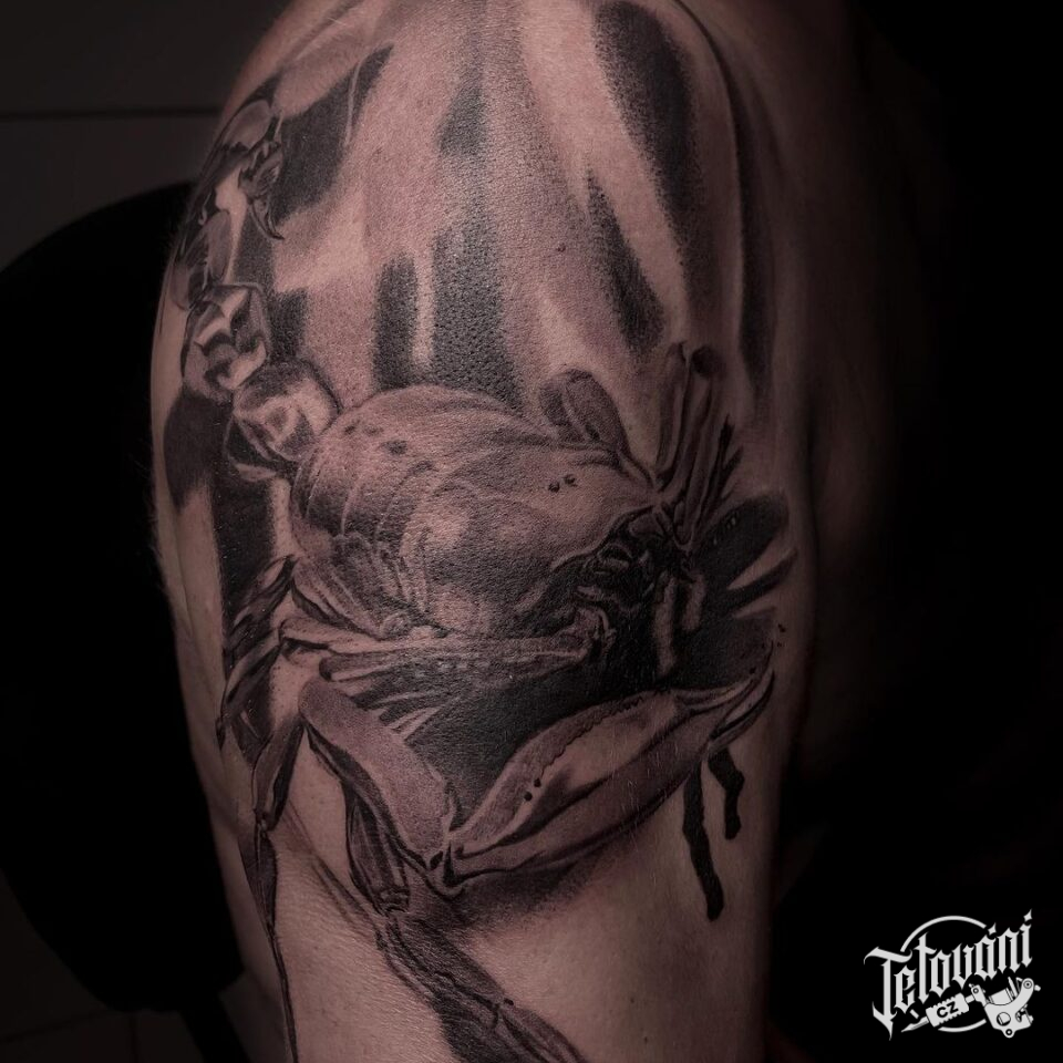 Tetování zvířata, škorpion na rameni