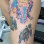 Tetování zvířata, slon, hroch, želva, králík na stehně