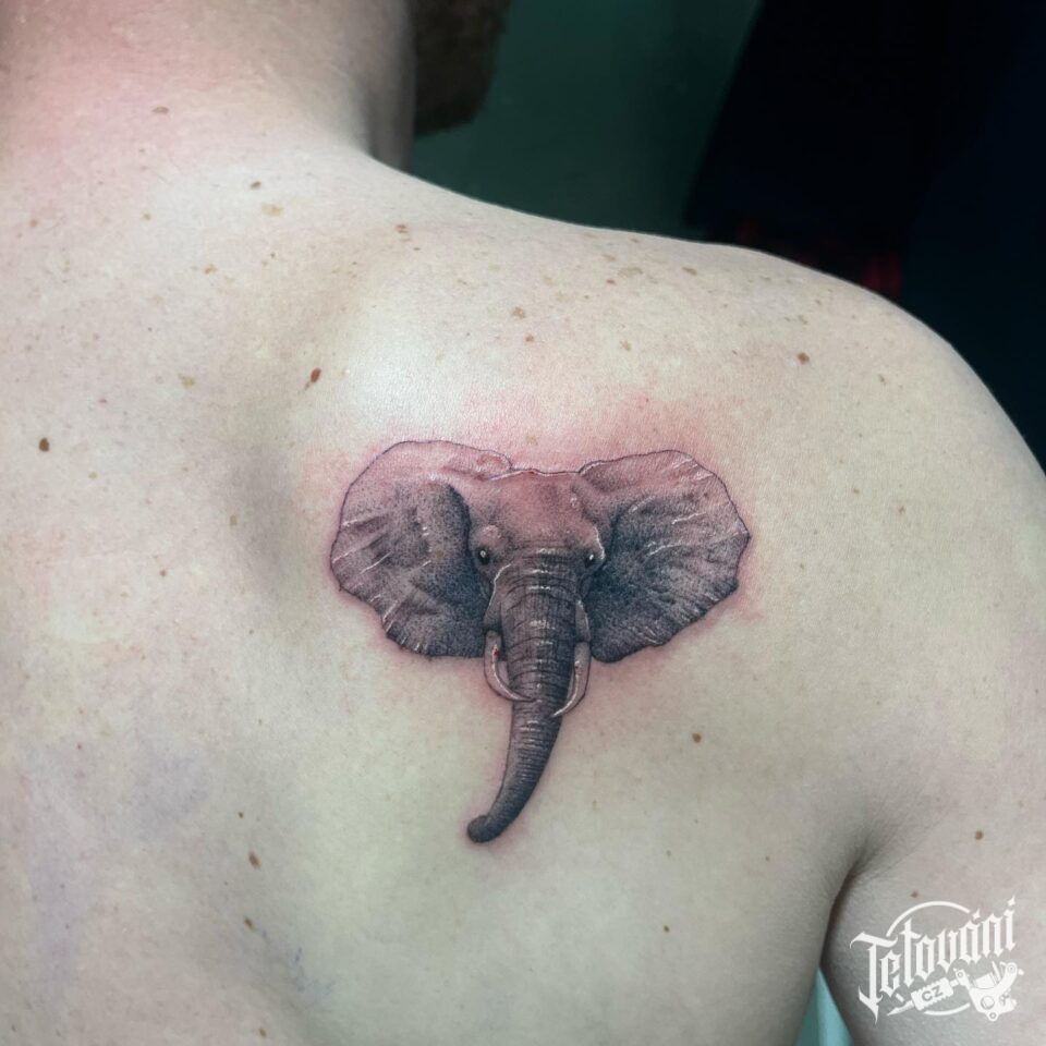 Tetování zvířata, slon na lopatce
