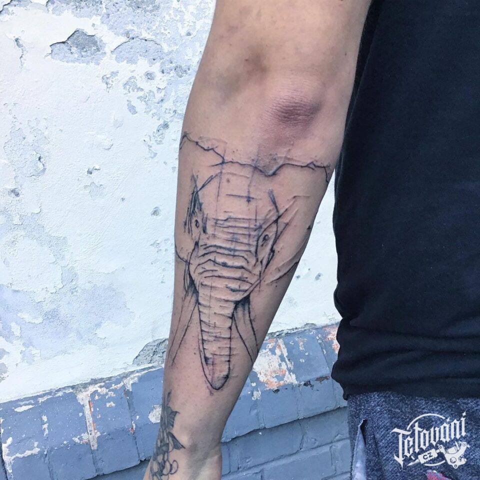 Tetování zvířata, slon na předloktí