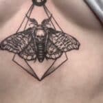 Tetování zvířata, smrtihlav a lebka pod prsa