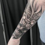 Tetování zvířata, sova a lebka na předloktí