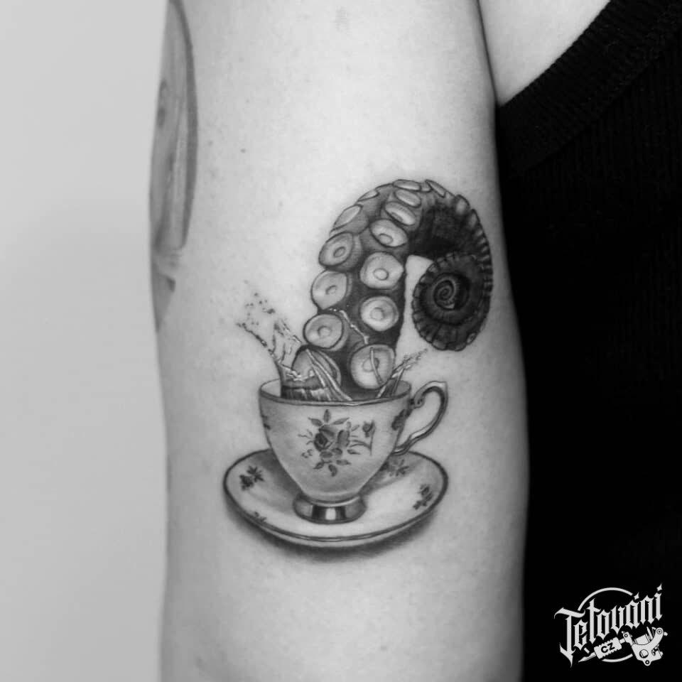 Tetování zvířata, surrealismus chobotnice na paži