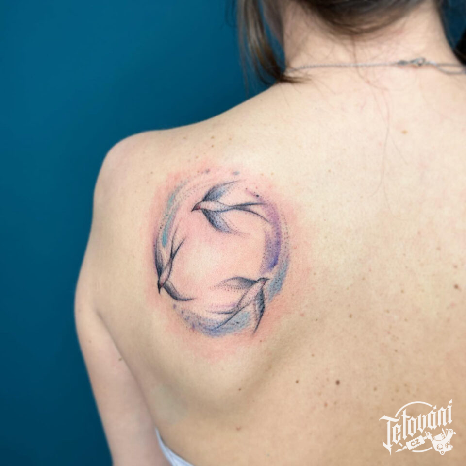 Tetování zvířata, tři ptáci na lopatce