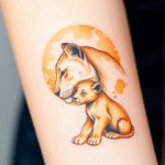 Tetování zvířata tygr a mládě, matka a dítě na předloktí