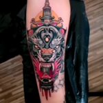 Tetování zvířata, tygr a předmět, dýka na předloktí