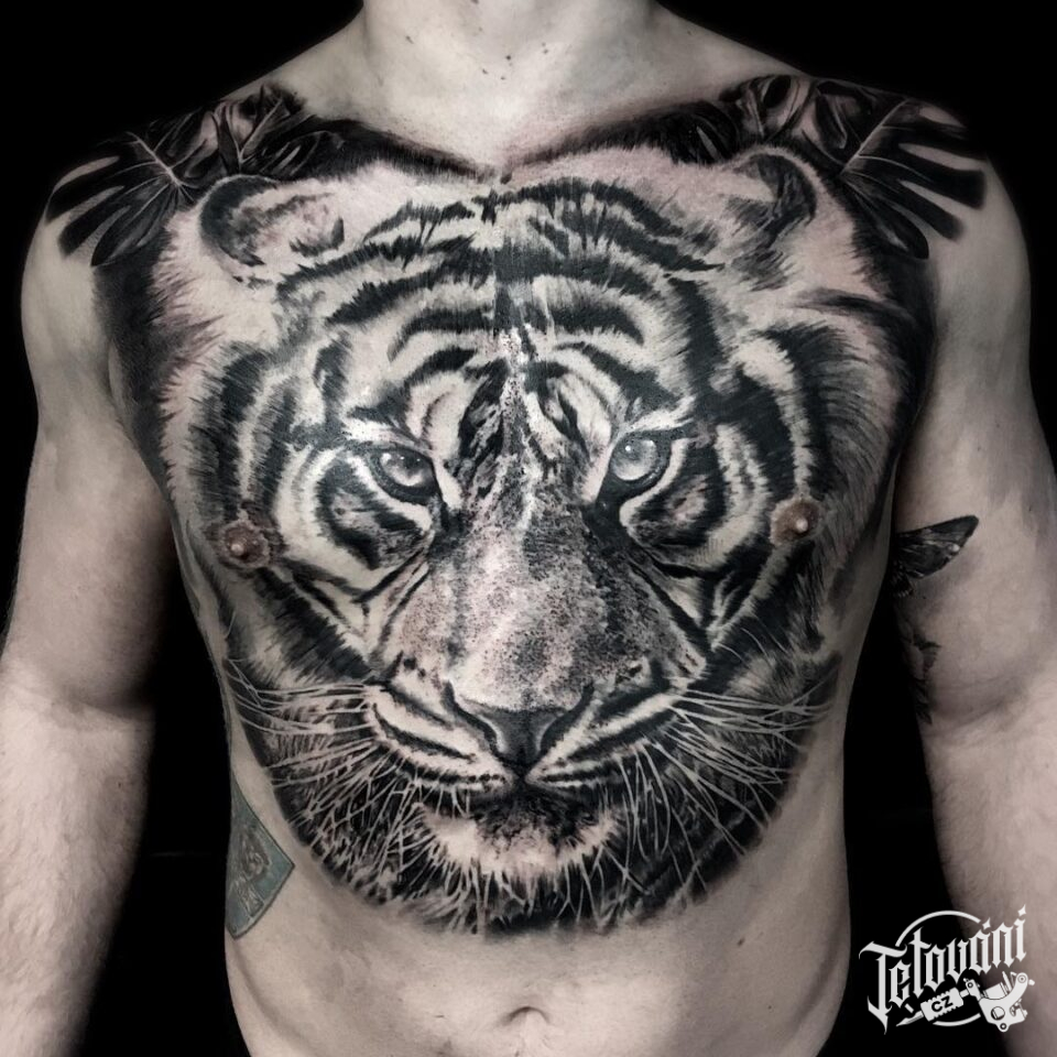 Tetování zvířata, tygr na hrudi